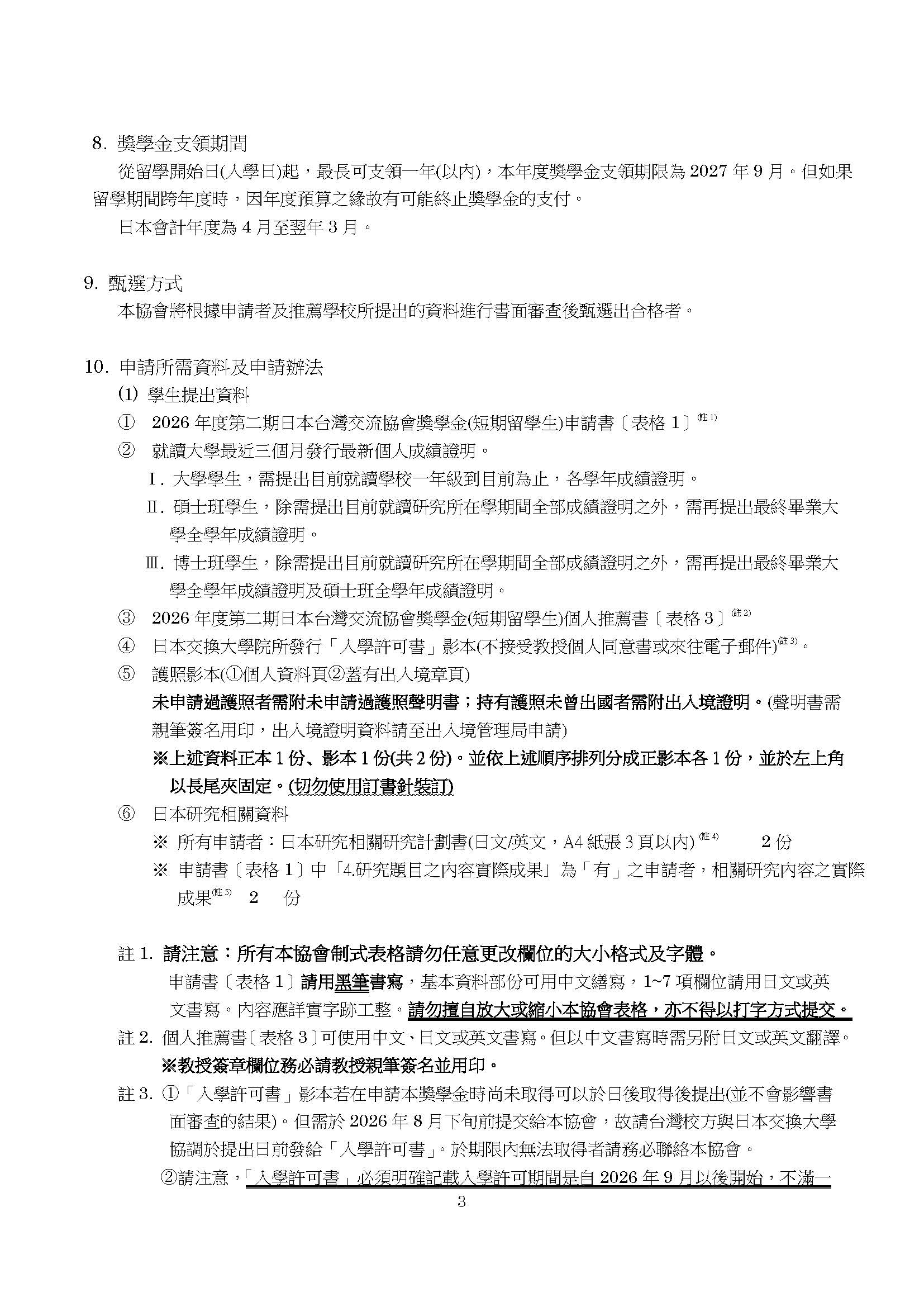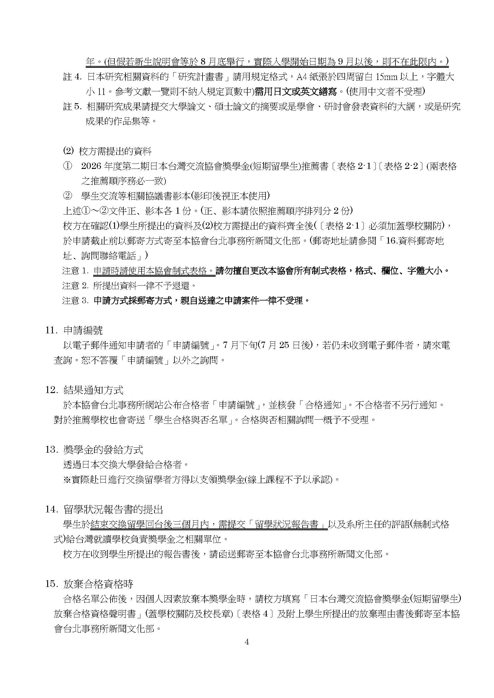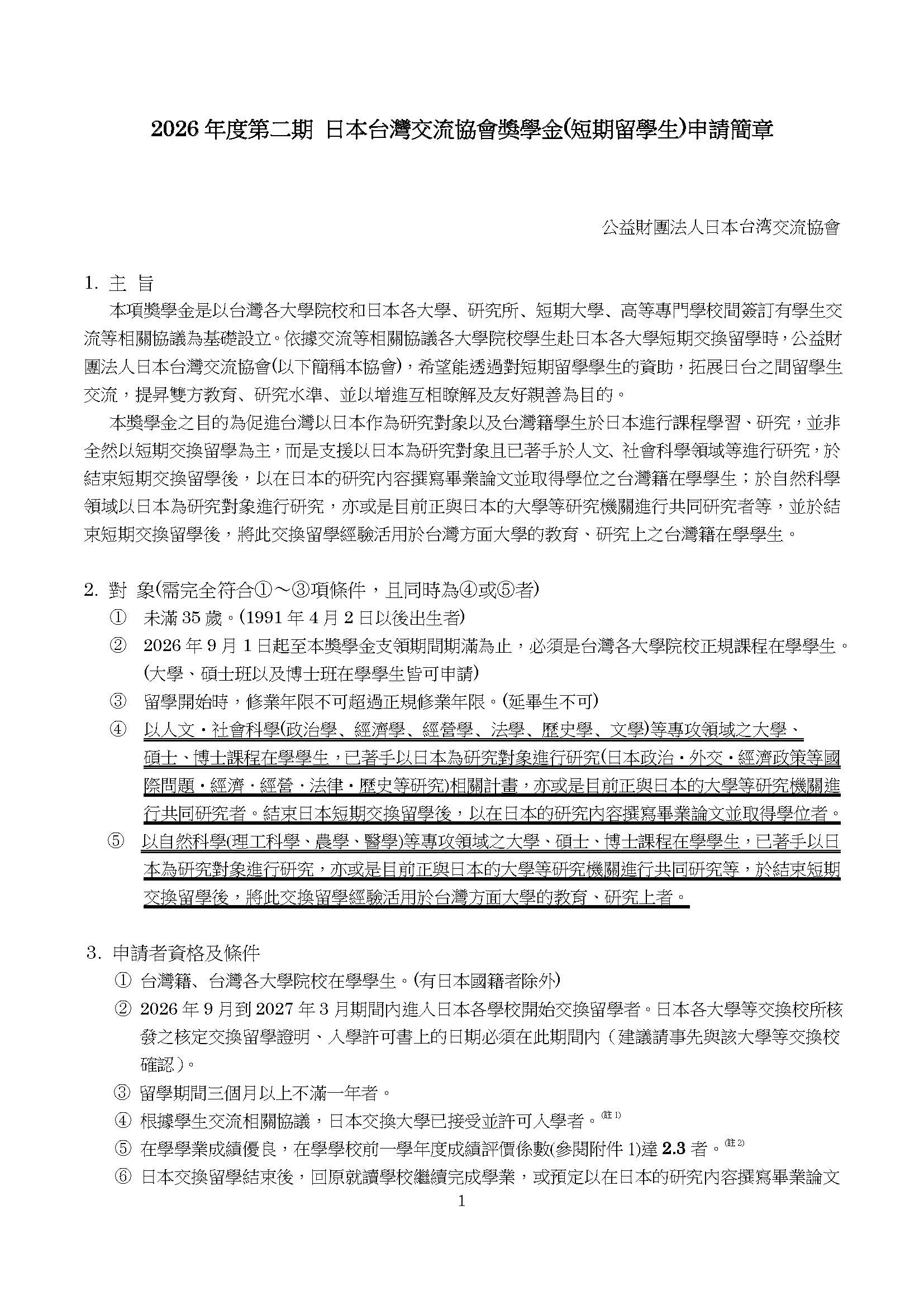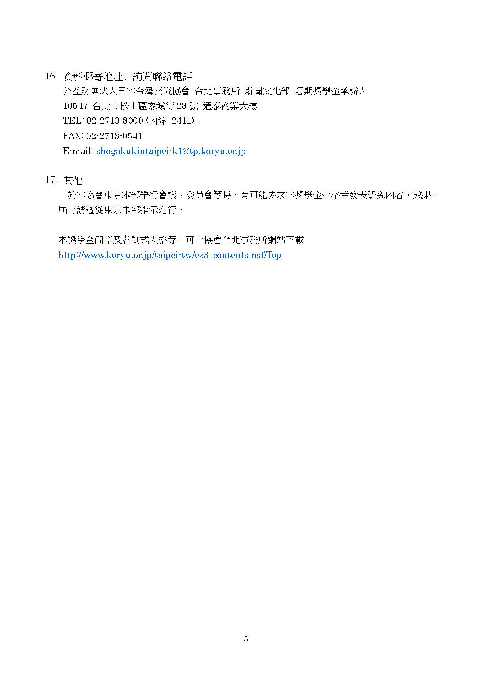 (四)詳細申請資格與條件請參閱該獎學金專屬網站: https://www.koryu.or.jp/tw/business/scholarship/shortterm/